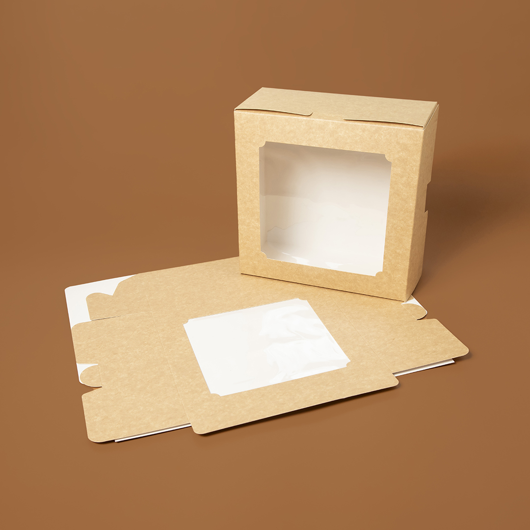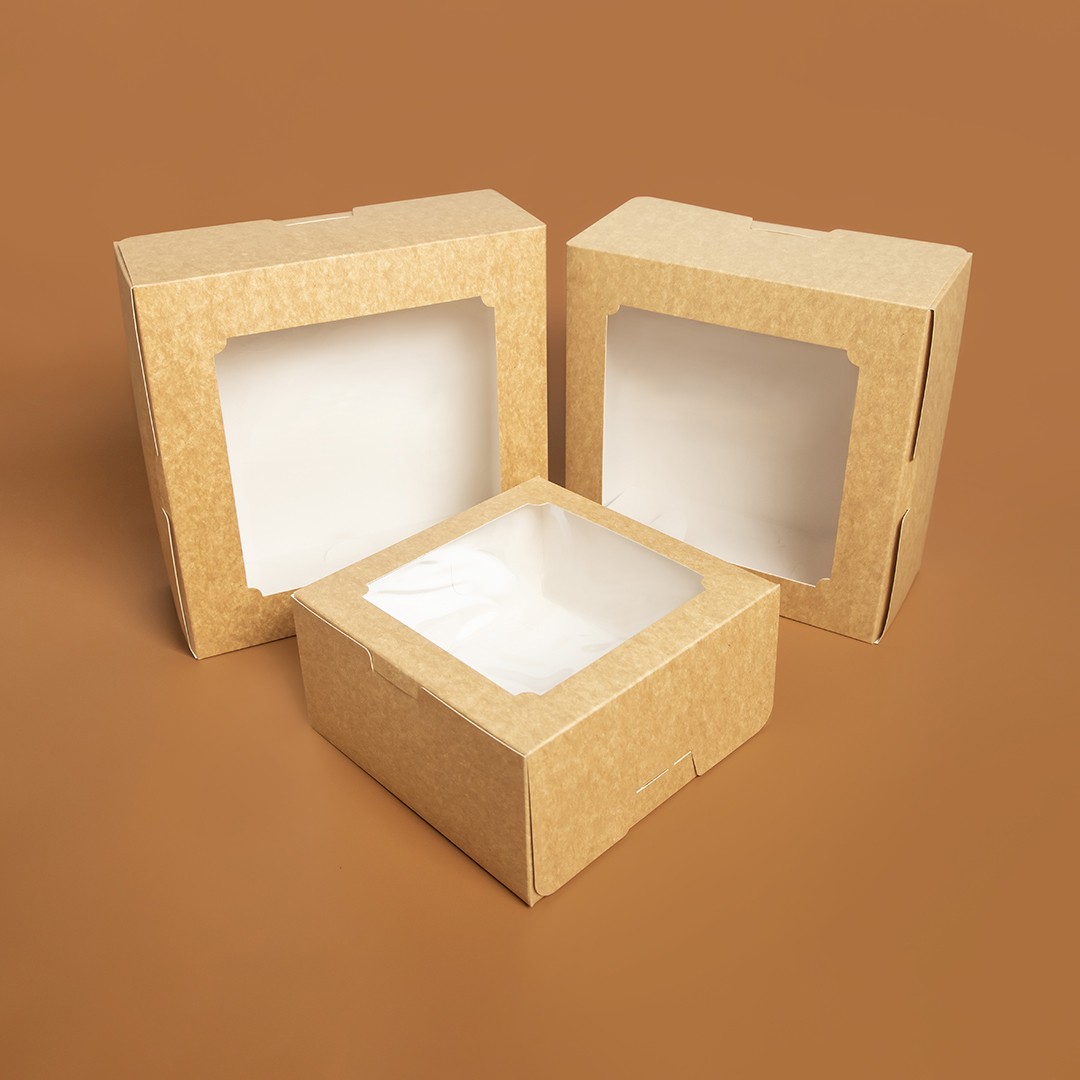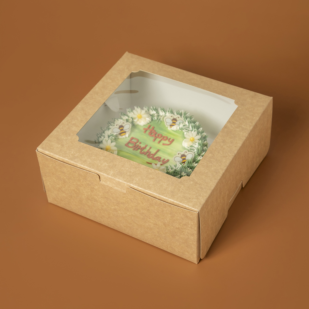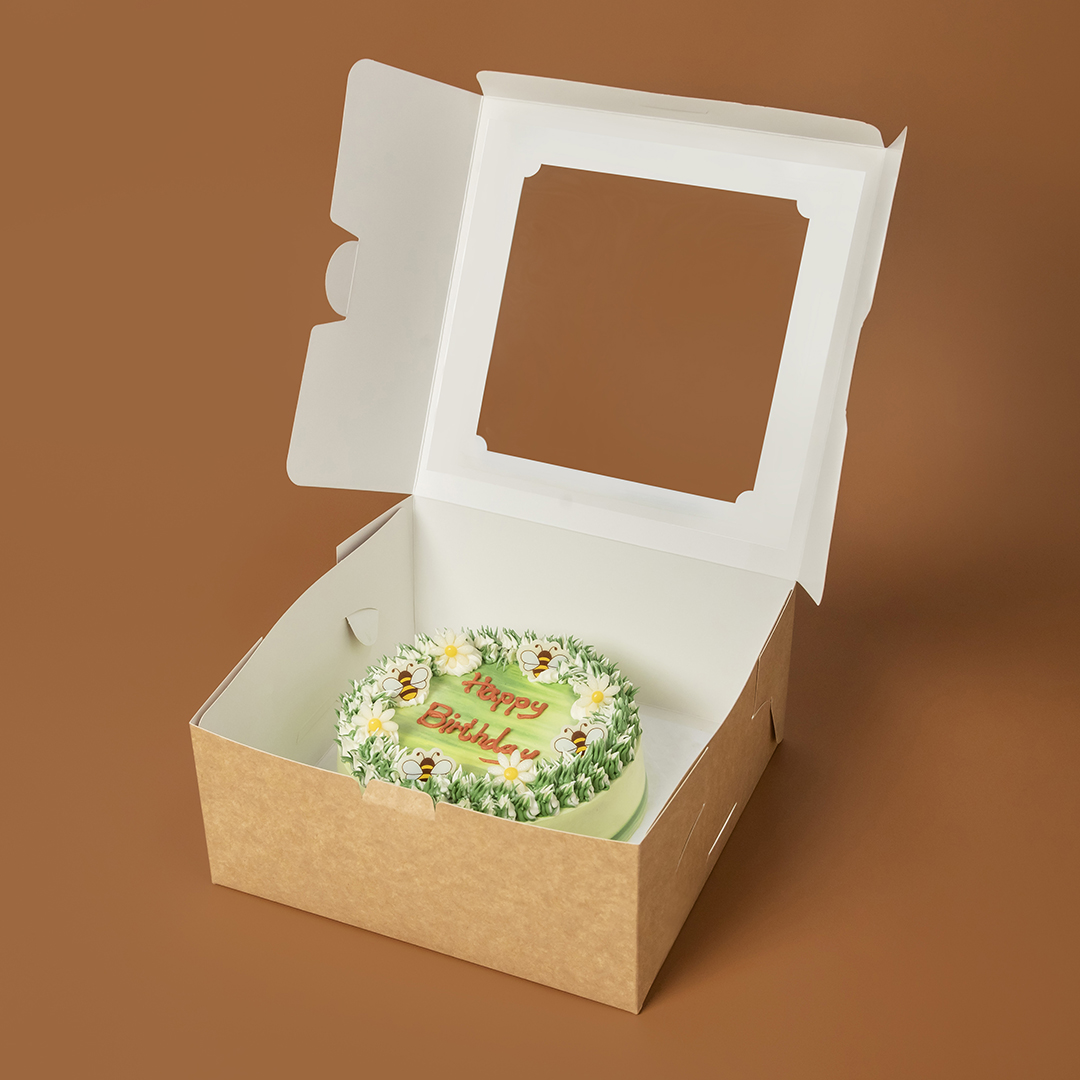 กล่องเค้ก 2 ปอนด์ กระดาษไอโวรี่คราฟท์ ทรงสูง (เจาะหน้าต่าง)