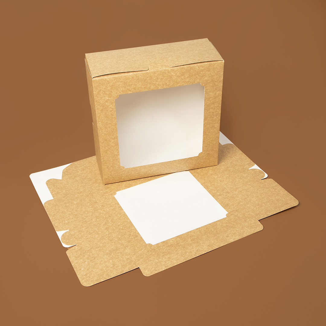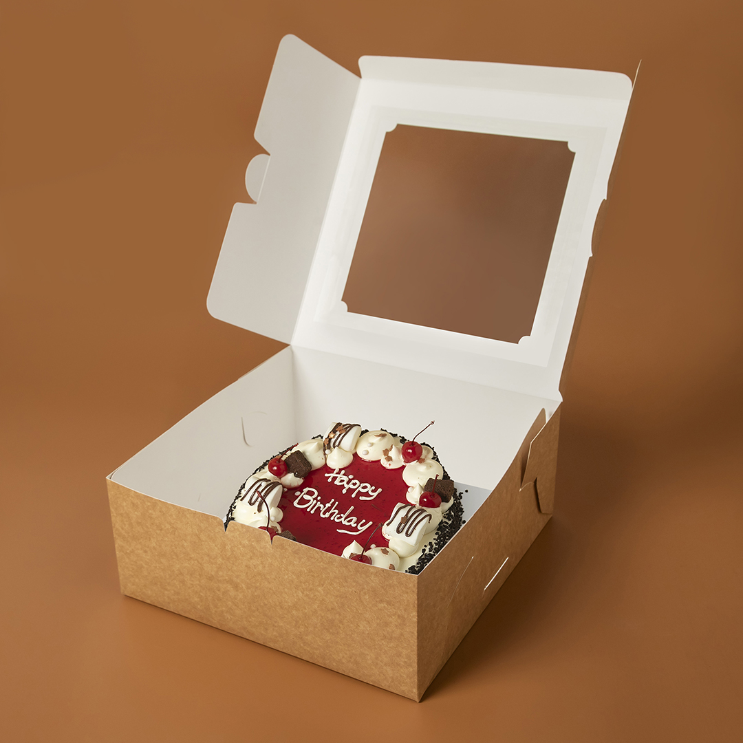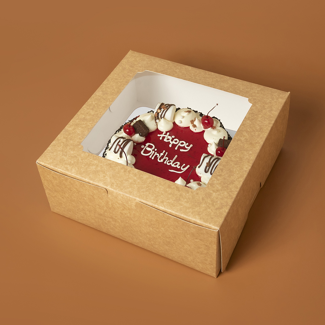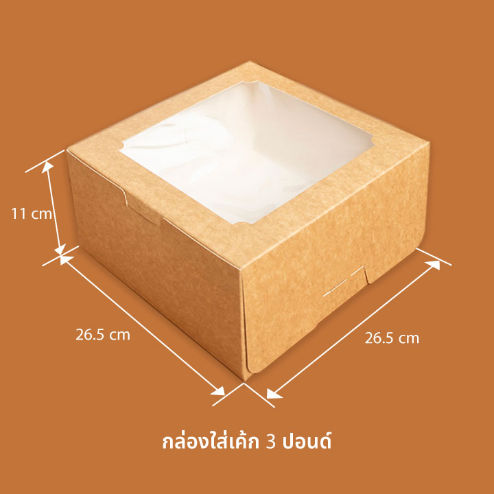 กล่องเค้ก 3 ปอนด์ กระดาษไอโวรี่คราฟท์ ทรงสูง (เจาะหน้าต่าง)